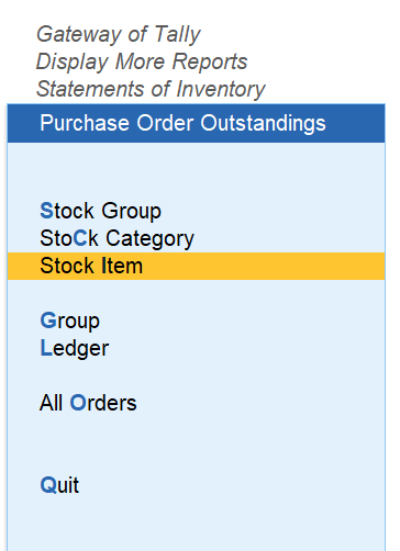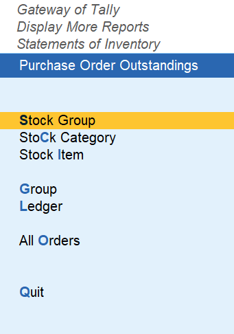 now here you can see your purchase order Outstanding by  following wise lets see one by one